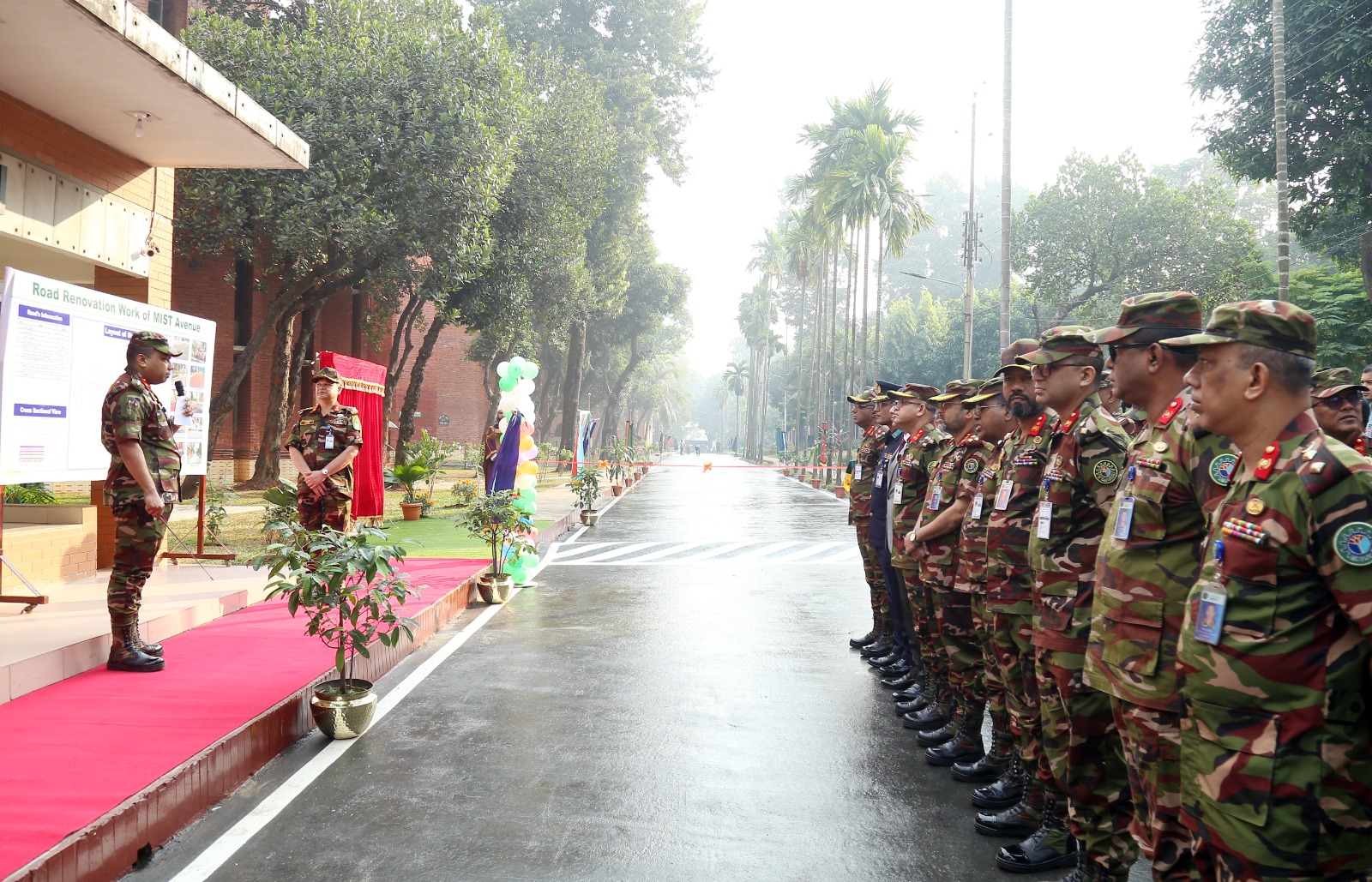 The renovation of MIST Avenue, a 840-foot long and 18-foot wide roadway, was formally inaugurated on 1 December 2025 by respected Commandant of MIST. This crucial project, which addressed a long-standing requirement of the institute, was completed on 30 November 2025, having commenced on 4 May 2025. Guided by respected Commandant, the work was executed by Advance Development Technologies Limited under the supervision of the Engineering and Maintenance Section of MIST and GE (Army) Mirpur. During the ceremony, respected Commandant appreciated the quality of the work and commended all involved teams and individuals for its successful completion.