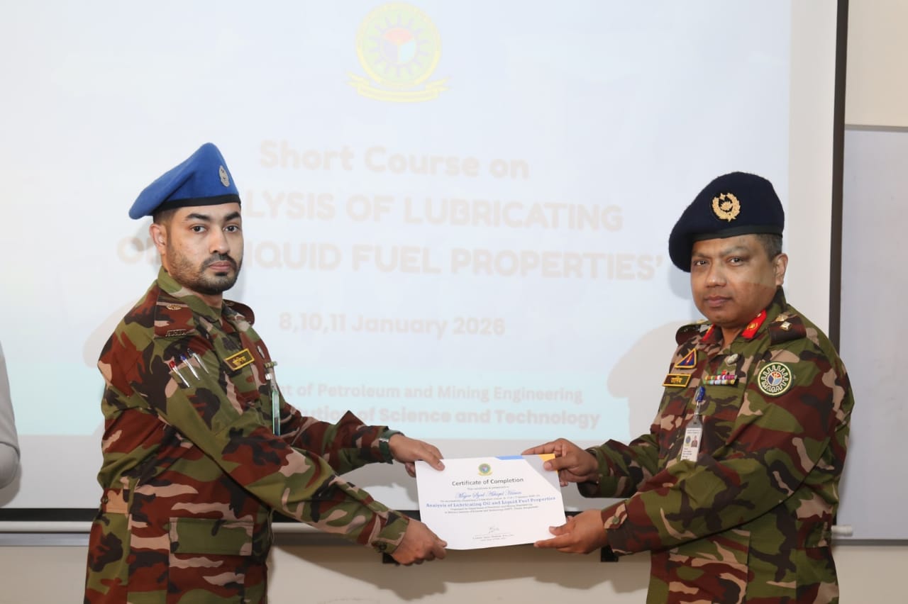 The Department of Petroleum and Mining Engineering has successfully conducted the short course on "Analysis of Lubricating Oil and Liquid Fuel Properties," held from 08–11 January. A total of 29 participants actively took part in the course. The closing ceremony was held on the afternoon of 11 January, during which certificates were awarded by the Head of the Department.